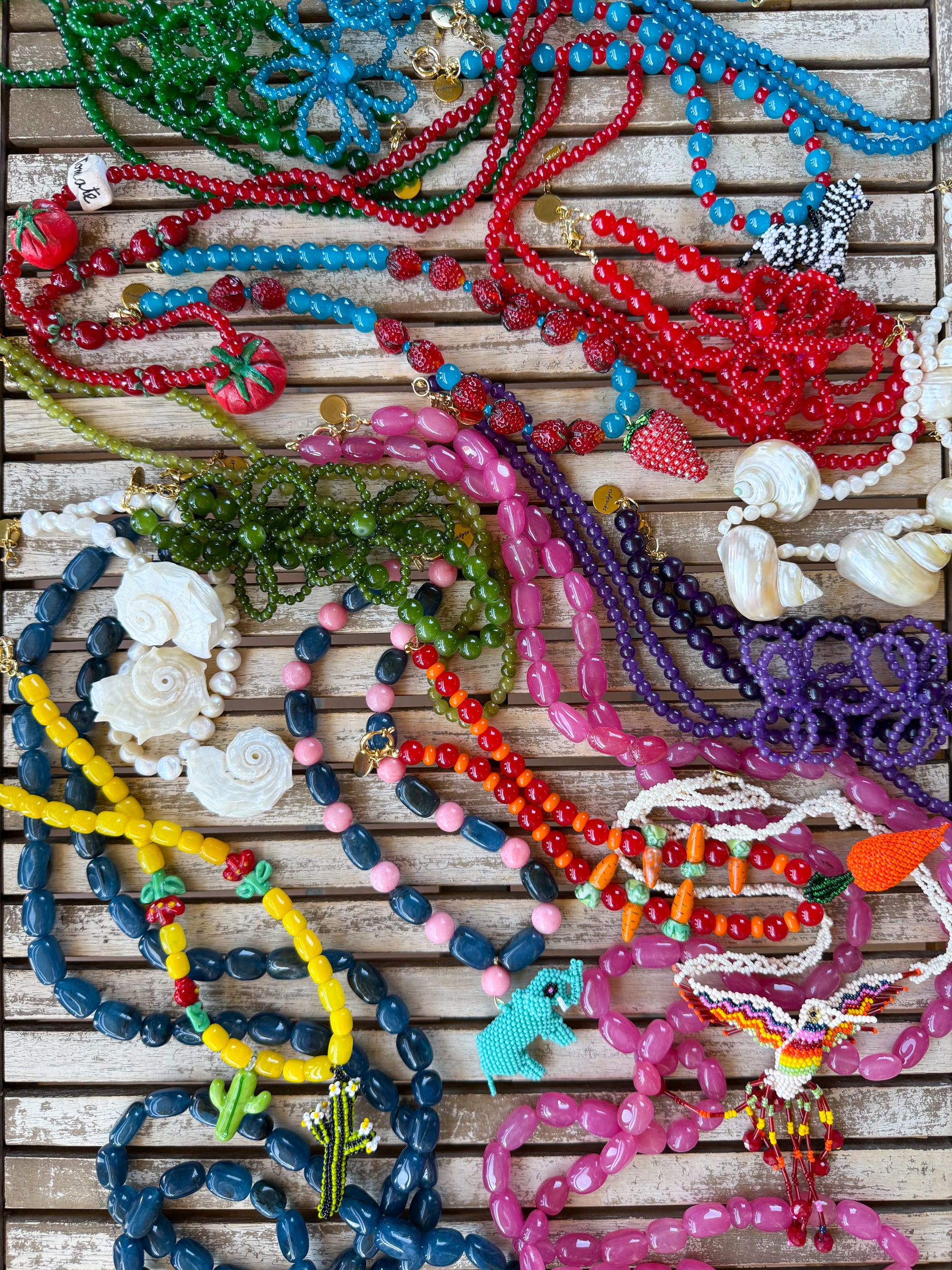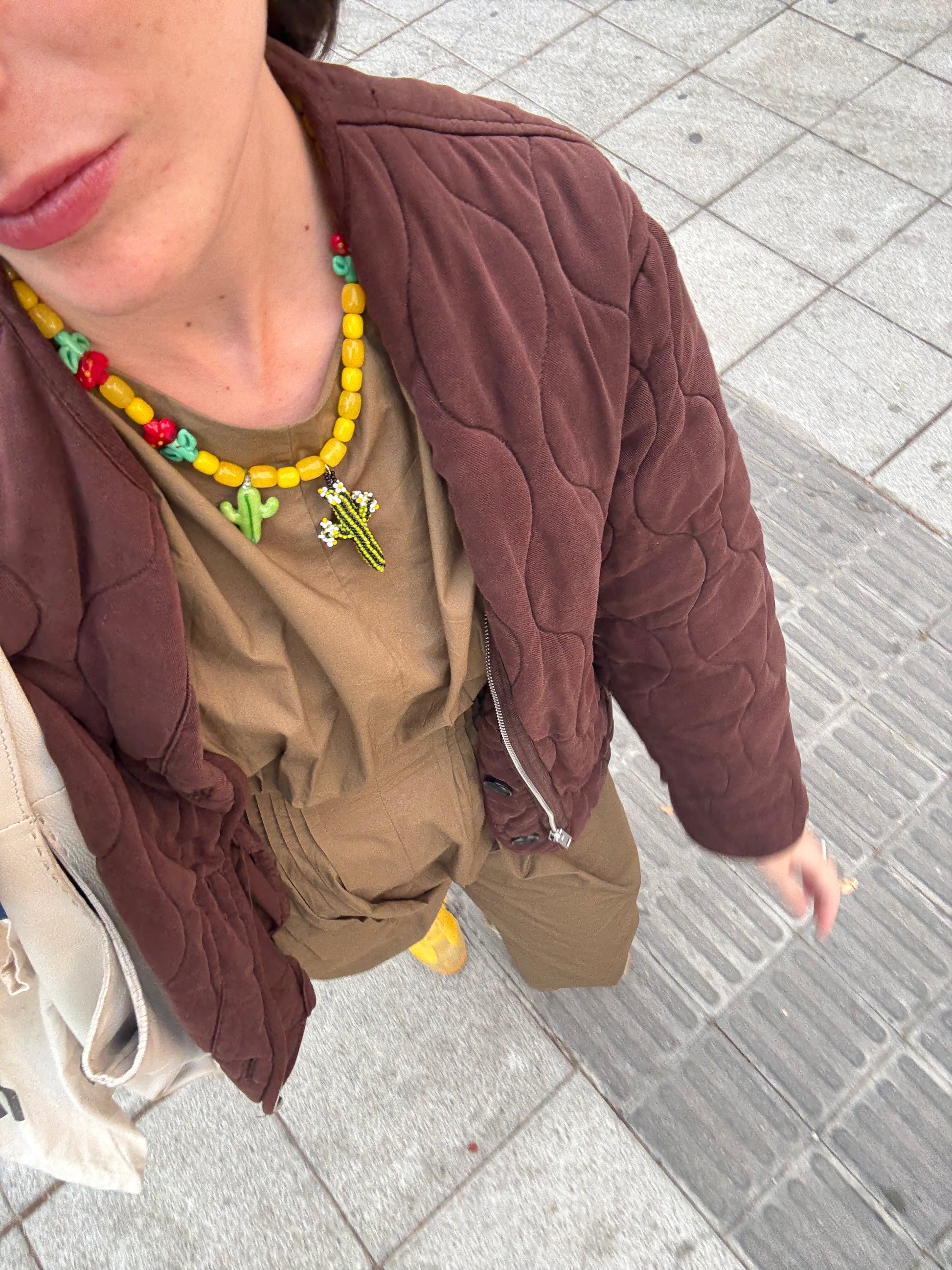 Collar de cuentas amarillas de cristal, flores y cactus de cristal soplado y Cactus artesanal de pepitas de cristal.