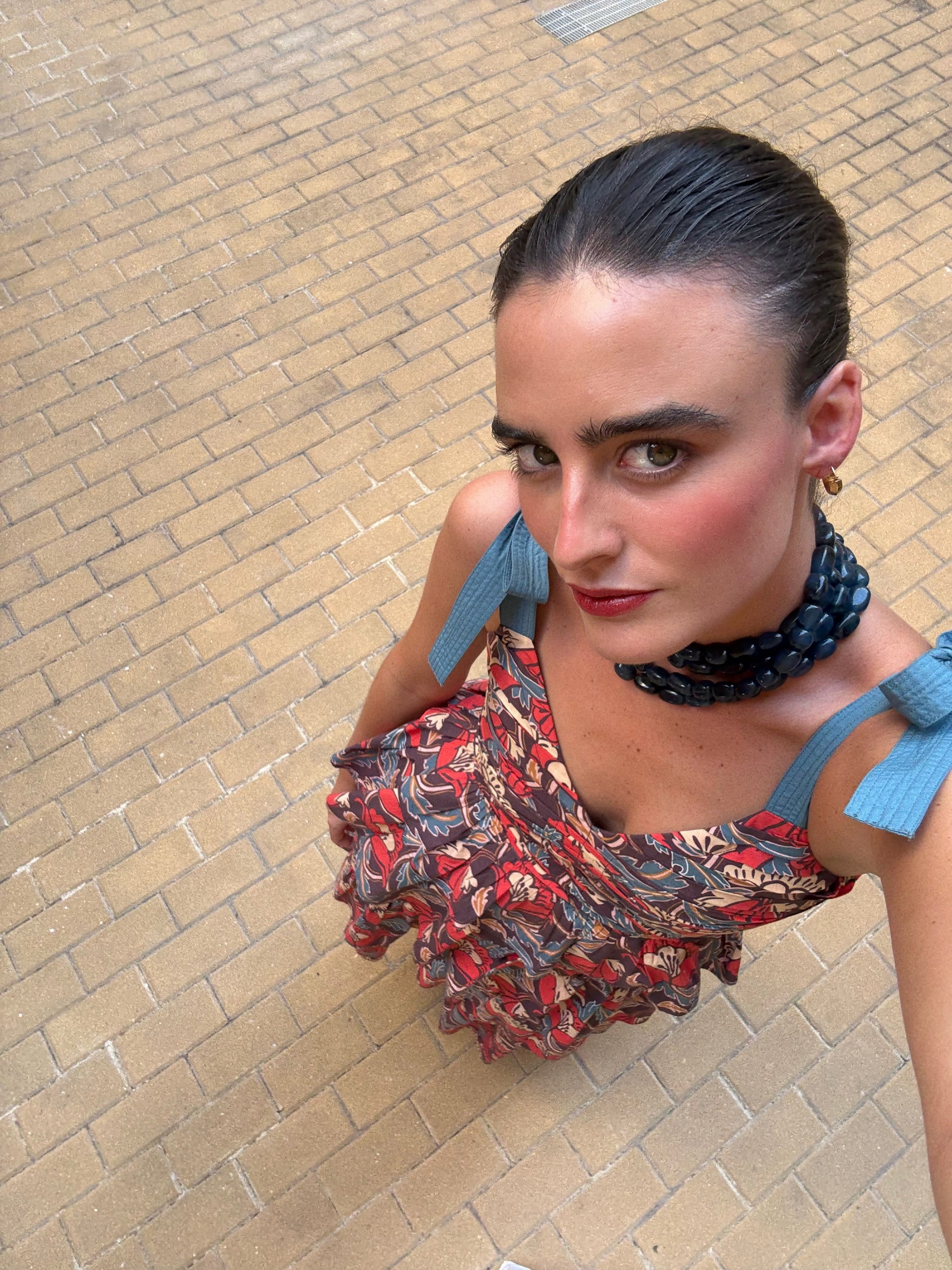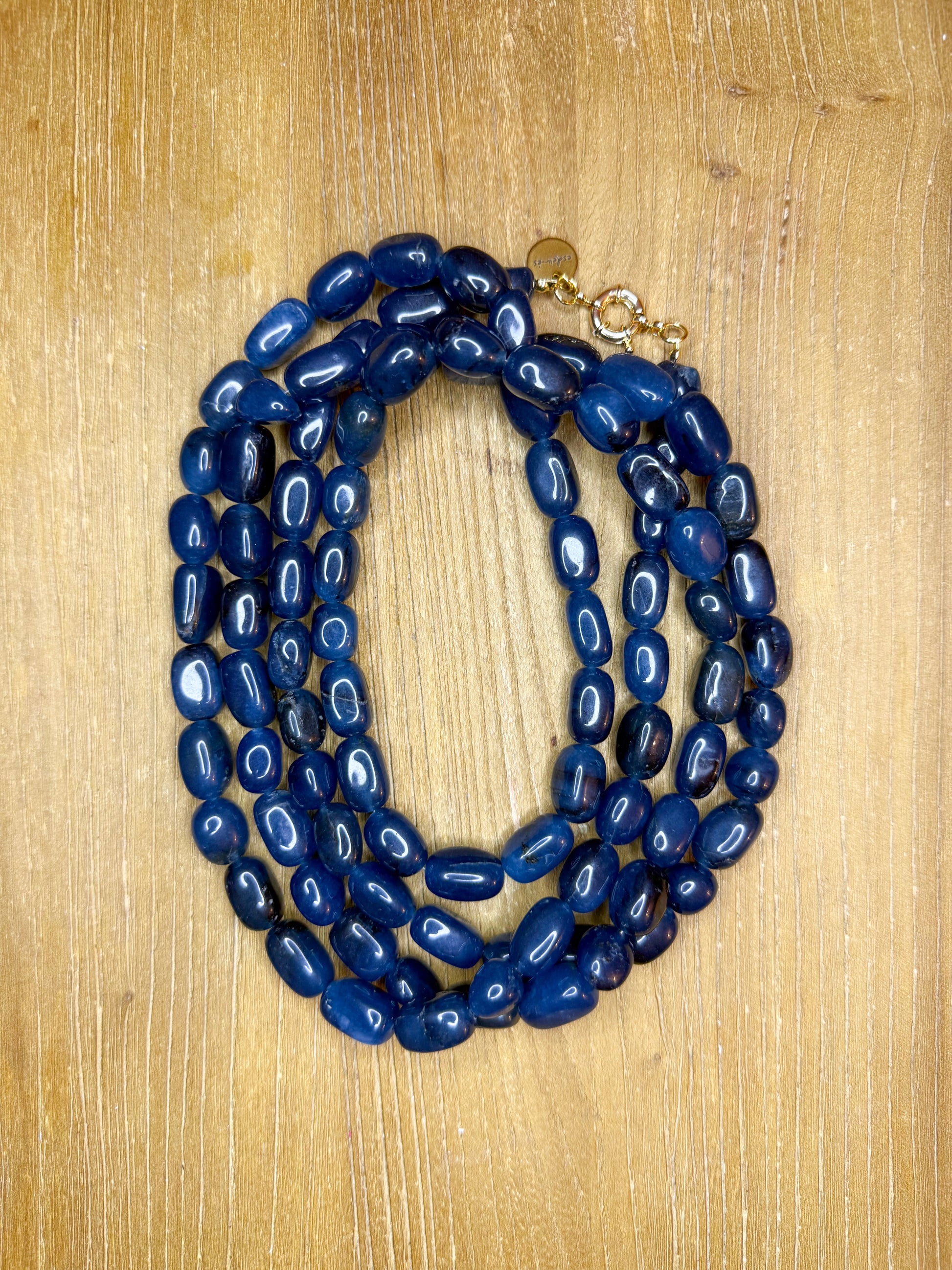 Collar multiposición de piedra Calcedonia en color azul añil.